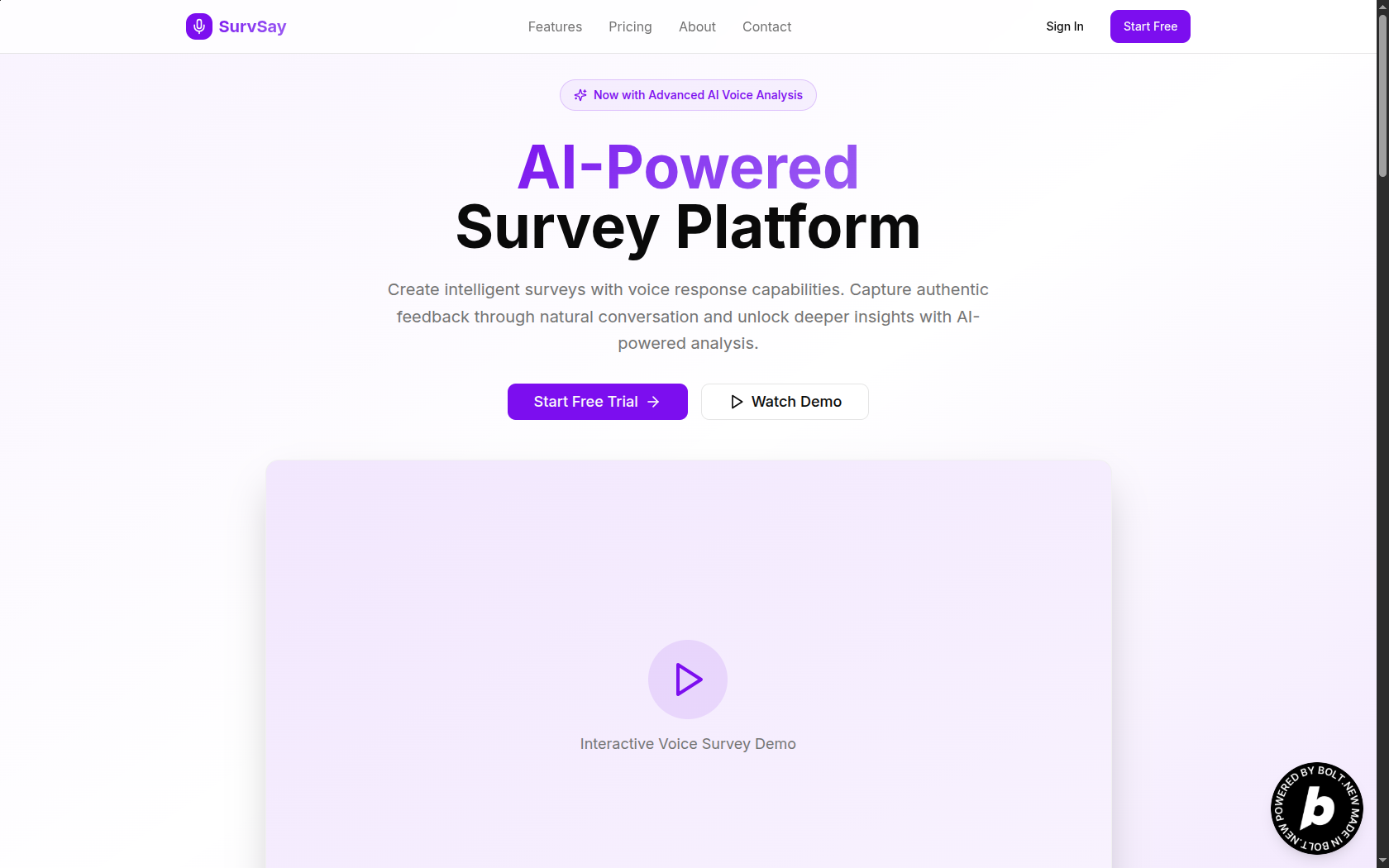 Create intelligent surveys with voice response capabilities. Capture authentic feedback through natural conversation and unlock deeper insights with AI-powered tools.